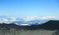 First, we drove to the visitor center halfway up the mountain, where we had to navigate layers of fog. Then, we drove the four-wheel drive up to the summit, a winding, almost epileptic mountain road covered in cinders. Even the four-wheel drive would slip the first time we turned the steering wheel. But the sunset over the sea of clouds was absolutely stunning.
