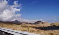 After passing through the clouds, the roadside scenery began to become desolate, with traces of lava everywhere.