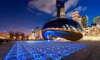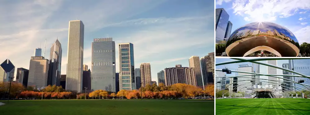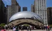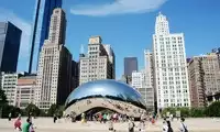 Here you can see Chicago's famous buildings, the Big Bowl and the Human Face Fountain, which add color to this architectural capital.