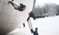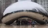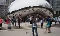 There's a giant kidney bean in Millennium Park. Tourists try to find themselves inside it, while students on a trip line up in front of it, jumping in various poses and taking photos.