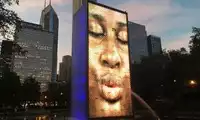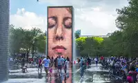 Another major attraction in Millennium Park, the Face Fountain, projects the faces of more than 1,000 Chicago residents onto a 50-foot LED screen, creating the illusion of fountains gushing out of their mouths.