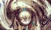This artwork shimmers, seamlessly visible, reflecting the scene before it like a mirror. Due to its spherical shape, the reflection creates a distorted image, similar to a funhouse mirror. Different people perceive the scene from different perspectives. Whites, Blacks, and even Asians—all laugh and playfully pose for photos beneath this wondrous and fascinating cloud bean.