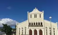 This church is located in the southern part of Saipan. If you're staying at the Kanoa Hotel or the World Hotel, it's a 10-minute walk to the right. It's also very convenient for those staying at hotels in the northern part of the island. The front of the church is quite magnificent, and many people come here to take wedding photos.
