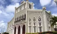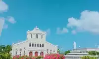 Mount Carmel Cathedral, built on Saipan in 1945 after World War II, has long served as a spiritual pillar for the island's residents. Located on Beach Road, the cathedral was built during Spanish rule and was destroyed during World War II. The white building you see today is a later reconstruction. Managed by a suburban community, the cathedral is remarkably well-preserved. Besides its magnificent exterior, the cathedral grounds are filled with a variety of vibrant flowers, creating a delightful spectacle.