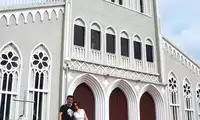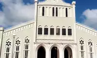 First, let's take a look at the peaceful Mount Carmel Cathedral. You can't take photos inside. Compared to European churches, this one is much simpler. It's the pillar of faith for the islanders, 90% of whom are Christians. The white church you see today was rebuilt later, and its exterior is still very beautiful.