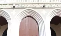 The Spanish-style Catholic church is on the roadside. Take a look at the exterior.