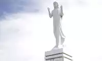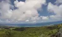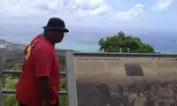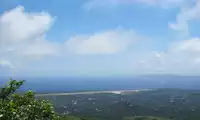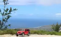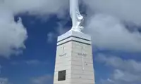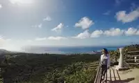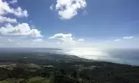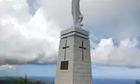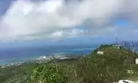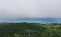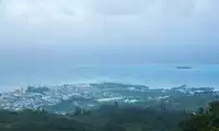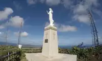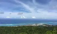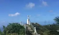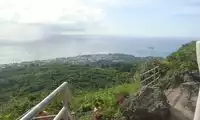 Mount Tapochao is Saipan's highest peak, standing 474 meters above sea level, located in the center of the island. From the summit, visitors can enjoy a 360-degree panoramic view of Saipan, including the international airport, Gunkanjima Island, and Suicide Cliff. The observation deck at the summit is surrounded by a fence, with a large statue of Jesus standing on one side and historical images and information about the Battle of Saipan on the other. Driving up the mountain is best done in an off-road vehicle, as the winding road is gravel and has a slight slope.