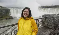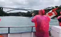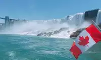 Niagara Falls is truly magnificent. Looking down from above doesn't give you the full experience; you absolutely have to take a boat ride to see it up close. It's so... The raincoats provided don't actually block water at all; they only protect your bag. The water and wind near the falls can be quite disastrous, but it's incredibly refreshing. Remember to wait for a rainbow; it's the perfect complement to the falls.