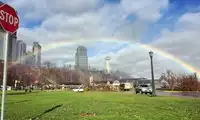 The tower houses a theater and a playground, and the top floor is a revolving restaurant. Viewing Niagara Falls from the Canadian side is even better than from the American side. Besides viewing from the shore, climbing the observation tower, or taking a boat tour, a boat tour feels like stepping into a water curtain cave. The torrential downpour of water pelts down on you, and even the best raincoat can't withstand the cascading spray and mist. Furthermore, thanks to the mist created by the cascading falls, rainbows are often visible on the shore!