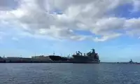 The Hawaii Naval Base, where the US Pacific Fleet's Third Fleet is located, is home to Nimitz-class aircraft carriers, Burke-class destroyers, and other ships docked here in an orderly manner.