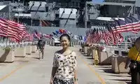 The tour guide got us our sightseeing boat tickets. We caught the 9:00 p.m. boat, which circles the lake and offers views of warships and the USS Arizona Memorial, a white building, though it's closed to the public. Inside, we can watch a video. From my broken English, I can tell it's a true account of the attack, filmed by the Japanese. War... is truly brutal...