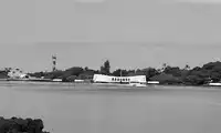 The USS Arizona Memorial is a memorial located in Pearl Harbor, Oahu, Hawaii, directly above the wreck of the battleship Arizona, which was sunk during the attack on Pearl Harbor. It is maintained by the United States government and the United States Navy. In addition to the sunken battleship, the wreck of the Arizona still contains the remains of 1,102 of the 1,177 sailors who died in the battle.