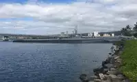 Also docked here is the famous battleship USS Missouri, on whose deck General MacArthur accepted Japan's unconditional surrender, ending World War II.