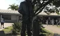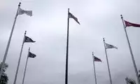 The flag above the memorial is always at half-mast, mourning...