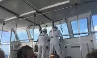 After exiting the theater, you'll board a boat to visit the USS Arizona Memorial and the various warships that were sunk. Standing is not allowed during the boat ride, so taking photos is unlikely. The round-trip boat tour takes about 40 minutes.