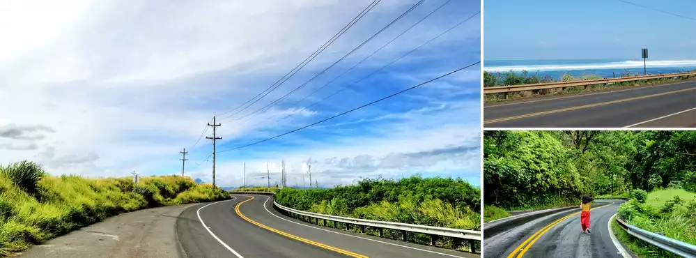 99% of the road surface of Hana Highway is flat and wide, and it is not steep. However, it has more bends, and people who are prone to motion sickness may vomit.