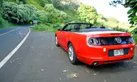 Today's drive is Hana Road, considered one of the ten most scenic drives in the United States. After filling up the tank and heading in, it was drizzling sporadically. The Mustang's awning would open for a moment before the rain started to fall, and then I had to close it again when the rain stopped. It was quite a chore. The road is full of curves, but not treacherous. There are plenty of cars parked at each viewpoint. The Mustang's cornering is also quite good, not causing any dizziness. The road is lined with typical tropical rainforest scenery, and you can often see a sliver of coastline after a while. However, the overall scenery doesn't quite rival the Big Island's Volcano Road. (That's the initial impression; the return is different.)