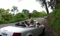 The Road to Hana is a mountain road with 72 bends, many curves, and multiple single-sided bridges. You can't go faster than 20, so it takes a long time. If there are two drivers in the car, it would be perfect.