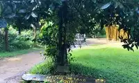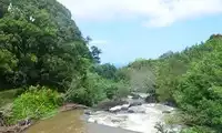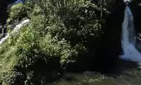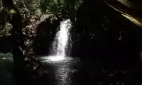 To reach the waterfall's pool, you have to wade through knee-deep water. I took off my skirt and walked across in my bikini and river trekking shoes. The waterfall itself wasn't particularly impressive; the wild nature of the area was what mattered. Wading and swimming were the highlights of this trip.