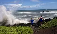 I have to say! My camera can't capture the beauty!!! It was so beautiful! Along the way, there was the endless Pacific Ocean! There were black sand beaches! There were red sand beaches! There was the eye of the storm! There were waterfalls! There were mountains! There was a lake! There were all kinds of tropical plants! And all kinds of small animals! It was so exciting!