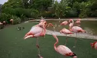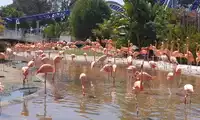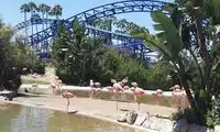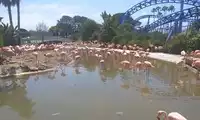 There are also a bunch of flamingos under the roller coaster! They are super aggressive and sometimes they strut right on the road, forcing tourists to give way!