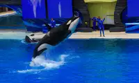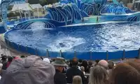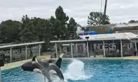 This is the signature show here, only running daily. Missing it would be a real shame. Actually, it's not really a show, strictly speaking. More accurately, it's a display of killer whale behavior. Through large screens, a host's introduction, and live demonstrations of the killer whales, visitors can learn about these fascinating creatures while also learning about conservation. Despite the many changes, the show remains incredibly exciting. A word of caution: if you don't want to get wet, remember to bring a raincoat (you can buy one on-site for $10) or sit a little further away.