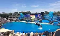 SeaWorld San Diego offers beautiful scenery nestled in the heart of a bay. It boasts a vibrant array of marine life and a wide selection of thrilling water-themed rides, perfect for all ages. The crowds aren't too crowded, and lines typically last about 20 minutes. During shows, especially the dolphin and whale shows, lines are almost non-existent. The marine life shows feature dolphins, whales, sea lions, seals, and more. While the park remains the same for several years, there's room for improvement. The park opens late at 10:30 AM. Adult tickets are 400 yuan per person if booked on China-TravelNote. Buying them at the door costs $69 per adult.