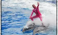 The dolphin show is very intense and can be considered as the world's top level. Crazy foreigners like to jump on the dolphins in the water.