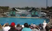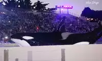 One attraction for all ages is the variety of marine animal shows, including killer whales (also known as orcas), sea lions, dolphins, walruses, and even pets. Killer whales are large, dolphin-like marine mammals that don't kill humans, but they will prey on passing gray whales and other dolphins. They are intelligent, social animals. We've previously visited them on San Juan Island in Seattle and gained some understanding of their habits. They can understand their trainers' commands and perform many challenging maneuvers. The killer whales at the three major American sea worlds all share the same proper name (or stage name): Shamu. Shamu was the first killer whale trained to perform at SeaWorld San Diego. After his death, SeaWorld named all participating killer whales Shamu in his honor. The most spectacular moment is the climax of their performances, when the audience chants "Shamu, Shamu" like a thunderous roar.