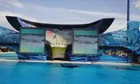 We were lucky enough to catch the 11:30 a.m. ocean show upon entering the park. Before the show began, a screen displayed some questions about killer whales, interacting with the audience through the camera, which was quite interesting. We had originally secured a seat near the front, but the screen indicated that the first ten rows might get wet, so we moved to the back. The show began, and the killer whales entered the scene. Their massive bodies were incredibly agile, leaping from the water in a beautiful arc before slamming heavily into the water, soaking the audience in front. The actual show didn't feature many orcas, and the crew's presence wasn't very noticeable, but the graceful form of these enormous creatures was a real eye-catcher. Furthermore, the content displayed on the big screen was rich and well-produced, making the show well worth seeing.