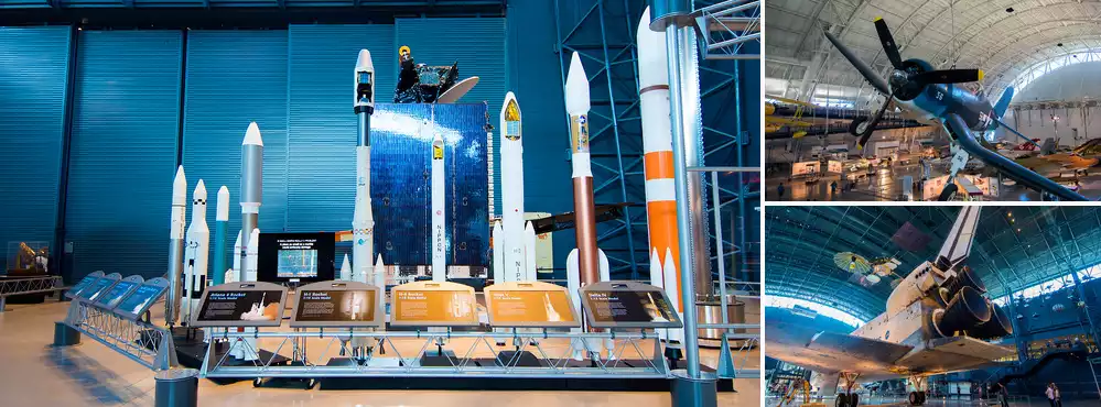 Complete your aviation journey with a visit to the Udvar-Hazy Center near Dulles Airport, featuring a space shuttle, Concorde, and huge aircraft hangars.