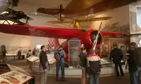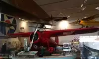 Another famous aircraft: Amelia Earhart's Lockheed Vega. It was this red plane that carried Amelia Earhart across the Atlantic Ocean, achieving two of her world records.