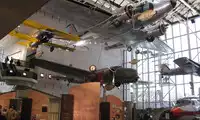 After entering the National Air and Space Museum, turn right and walk to the end. You'll find a simulated aircraft carrier area, complete with hangars, flight control consoles, and more. Here, you'll see a wide array of carrier-based aircraft dating back to World War II. You'll also see a plethora of vintage aircraft. There's such a wide variety of them, it's hard to tell them apart.