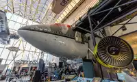 The star aircraft nose in the Flying Over America Hall, the Boeing 747 Nose, is said to have flown 70,000 times. Visitors can enter its cockpit for a tour.