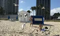 Miami's South Beach is its most alluring destination. With its sunshine, sand, blue skies, and ocean, it's a perfect place for a vacation. Furthermore, Miami's winter temperatures aren't particularly hot; you can wear short-sleeved shirts and shorts or go shirtless, and the temperature is just right, so you can spend the entire day on the beach without feeling overwhelmed. Beach umbrellas are available for rent at the beachfront kiosk. Simply tell the staff you want an umbrella. It's $20 a day and is valid until 5 p.m. If you need to eat, you can ask the staff to leave and return later to use your umbrella. The sand isn't particularly fine, and the sea is full of weeds, making it unsuitable for swimming. You can even see unidentified jellyfish washed ashore by the waves, which looks quite eerie.