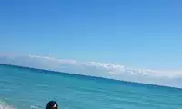 The beach was quite popular, with some water activities available, but most people opted for sunbathing and playing in the sea. We chose a spot, set up camp, and began enjoying the sun, sand, sea breeze, waves, and bikinis.
