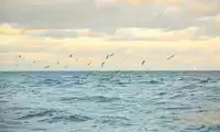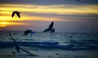 I witnessed the most beautiful sunrise I've ever seen. There was some traffic on the way from Miami to Miami Beach, but with the yachts and buildings on both sides, it wasn't boring. I highly recommend getting up early to watch the sunrise in South Beach, as the beach faces east and there are fewer people in the morning, making for particularly large waves and perfect for taking beautiful photos. The seagulls in South Beach practically flew overhead, remaining motionless – a truly endearing sight.