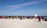 Miami's South Beach is distinct from its downtown. Located in the lower right corner of Miami, it's an island called Miami South Beach. Just drive across the bridge to the beach, you'll find a long, sandy beach on the right side, facing the ocean. There are a few bars and restaurants along the street next to the ocean, but once you enter the beach area, you'll see a vast expanse of sand.