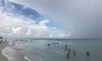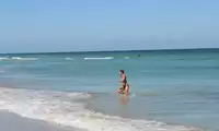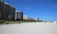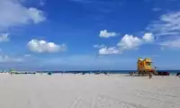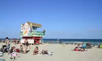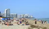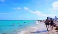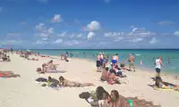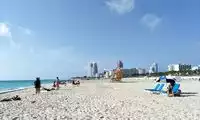 The excellent South Beach in Miami has fine sand, gentle slopes, clear water, and is a popular tourist resort.
