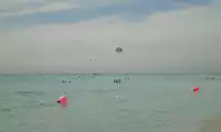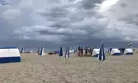 The beach sand is very fine and there are many people on it. It's worth a visit!