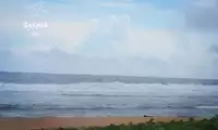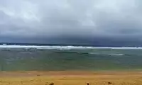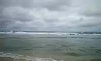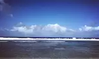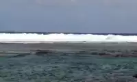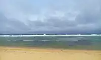 A beach with big waves, a little further from the shore, with many reefs, but with a wide view.