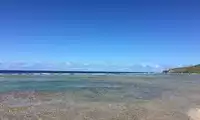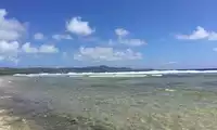 Tank Beach, also known as Star Sand Beach, is located in the southeast of Saipan. During World War II, American tanks landed here, and it's said there are still abandoned tanks sunken on the seabed. It was hot under the sun, so I bought a coconut for $2 and enjoyed the sea breeze while sipping coconut water.