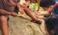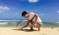 Tank Beach, also known as Star Sand Beach, was the site of a major tank battle during World War II, with American tanks landing here. It's said there are still abandoned sunken tanks on the seabed. Tank Beach is most famous for its star-shaped sand. You can usually find some if you press your palm against it.