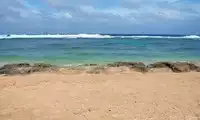 During World War II, this was the site of a tank battle, with American tanks landing here. It's said that there are still abandoned sunken tanks on the seabed. After the war, the beach took on this name, but people come here even more for its star sand, which resembles a five-pointed star, hence the local nickname "Star Beach." Star sand is very small, so to find it, press your hand on the beach and sift through the clinging sand. You might find it. You can also buy it as a souvenir in the city for $2 a small bottle.