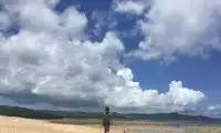 There's a sign at the entrance to Tank Beach that says "TANK BEACH." It's not famous for the tanks, but for Saipan's unique "star sand." Finding it is simple: press your hand down on the sand and flip it over; a little sand will stick to your hand. Look carefully and you'll see star-shaped sand—five-pointed stars, hexagons, and even octagons. If you have the time and can handle the sun, it's quite fun to slowly search for it. Besides the star sand, Tank Beach is also home to many hermit crabs. Find any shell and you'll likely find one hiding inside. Hold your hand for a while, and they'll pop out, making for a fun and itchy experience. Finally, Tank Beach is perfect for high jumping. It offers panoramic views of the Pacific Ocean, and the wind is quite strong, making for great photos!