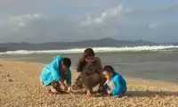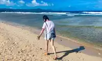 The beach has a long history with World War II. I don't like World War II, so if you're curious, you can search on Baidu. But the most special thing about this beach is the star sand. Finding it brings good luck. Actually, star sand isn't sand, so guess what it is. There are also many cute hermit crabs.