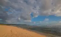 The beach is beautiful. We went there in the afternoon, so maybe the tide was high or the weather was bad, so the waves were huge.