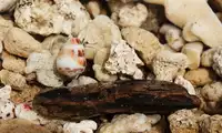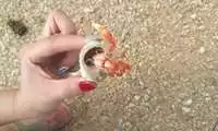 There is a beach with star-shaped sand, a lot of hermit crabs, and corals of strange shapes.