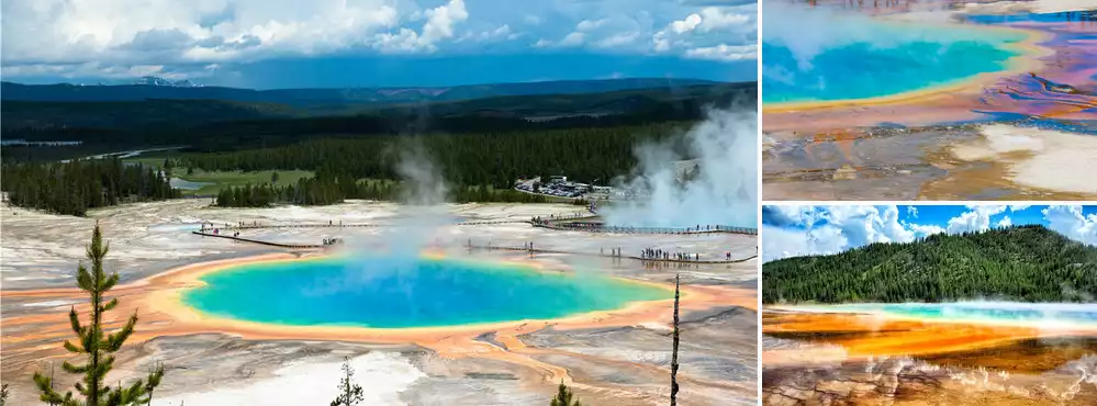 There are four things there: a hot spring, a geyser, and two pools. The Grand Prism is the most colorful of them all, and it feels like it brings together all the colors of the eye, with an unfathomable beauty.