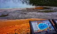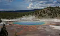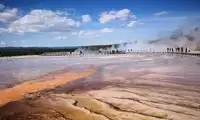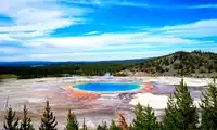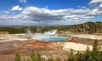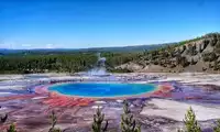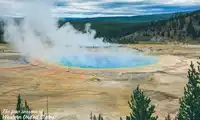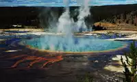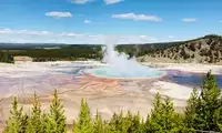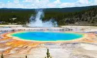 Explore the iconic Grand Prismatic Spring along with nearby geothermal features within the Midway Geyser Basin.